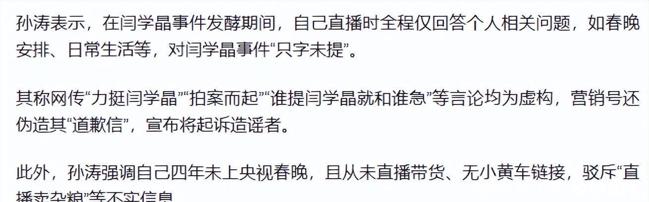 也正因为这样,孙涛在舞台上的状态一直很稳。他不急着翻新自己,也不靠博眼球取胜,而是每年交一份合格,甚至偏稳妥的答卷。春晚需要的,正是这种可靠性。直到最近这场网络风波,很多人才第一次意识到,孙涛的“稳”,并不是性格单一,而是有人在背后替他挡掉了很多杂音。营销号的拼接、造谣,把闫学晶事件,与孙涛强行绑在一起,攻击点很快从他本人转移到家人身上。这一次,孙涛没有选择沉默。